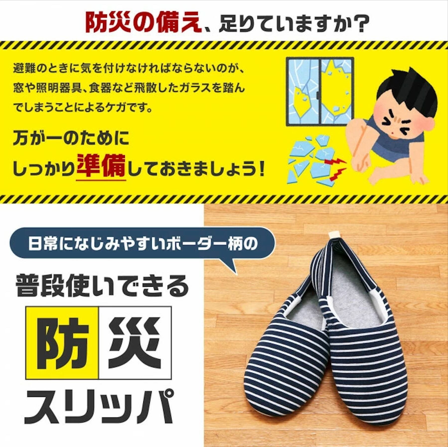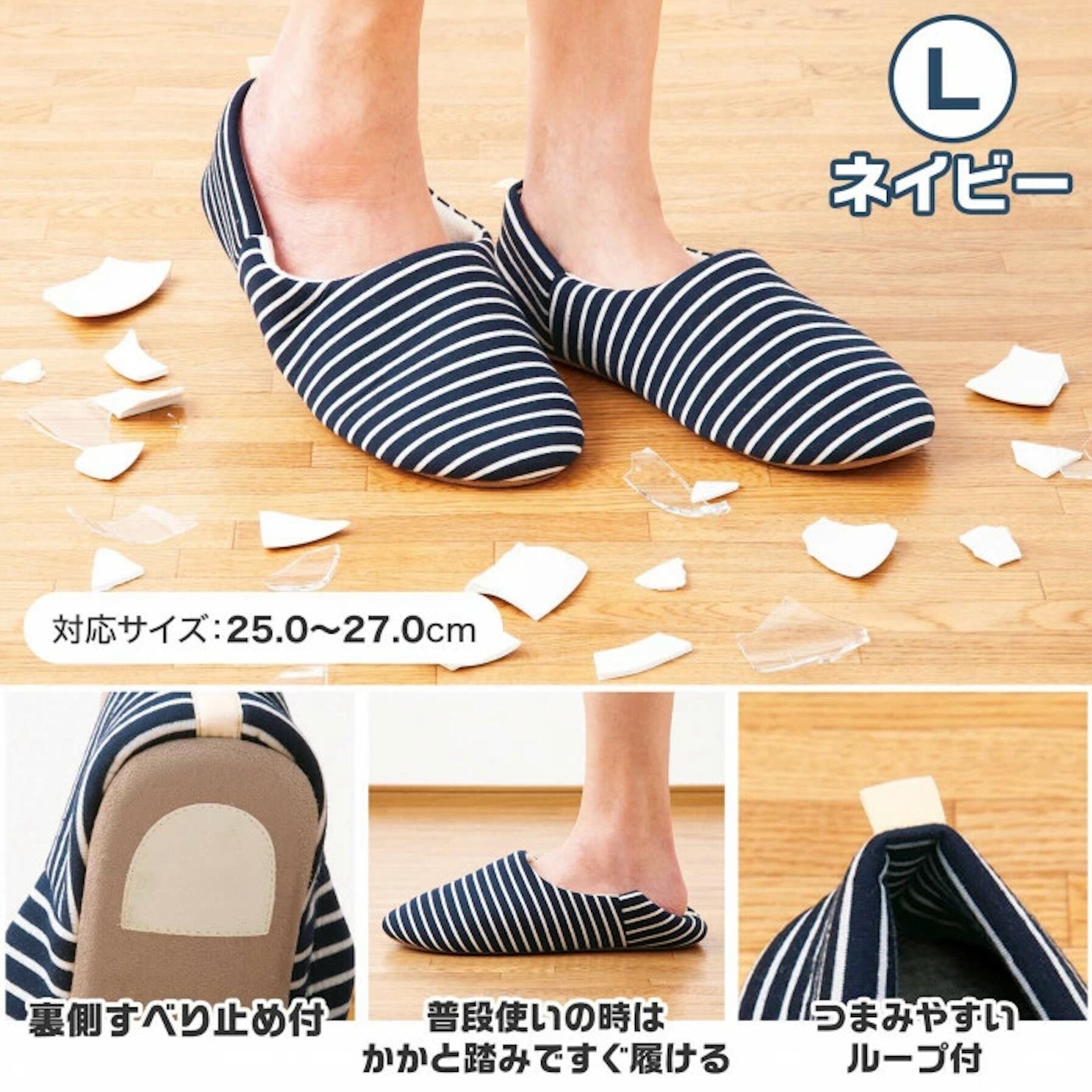 防災 スリッパ 釘 ガラス から足を守る L ネイビー
