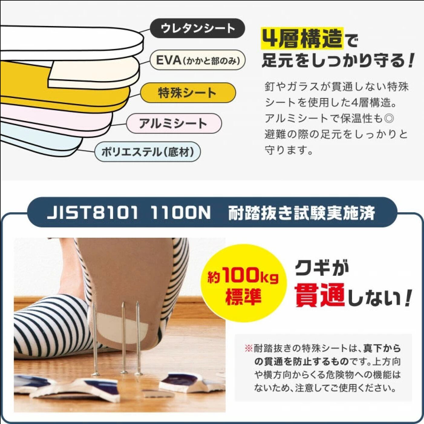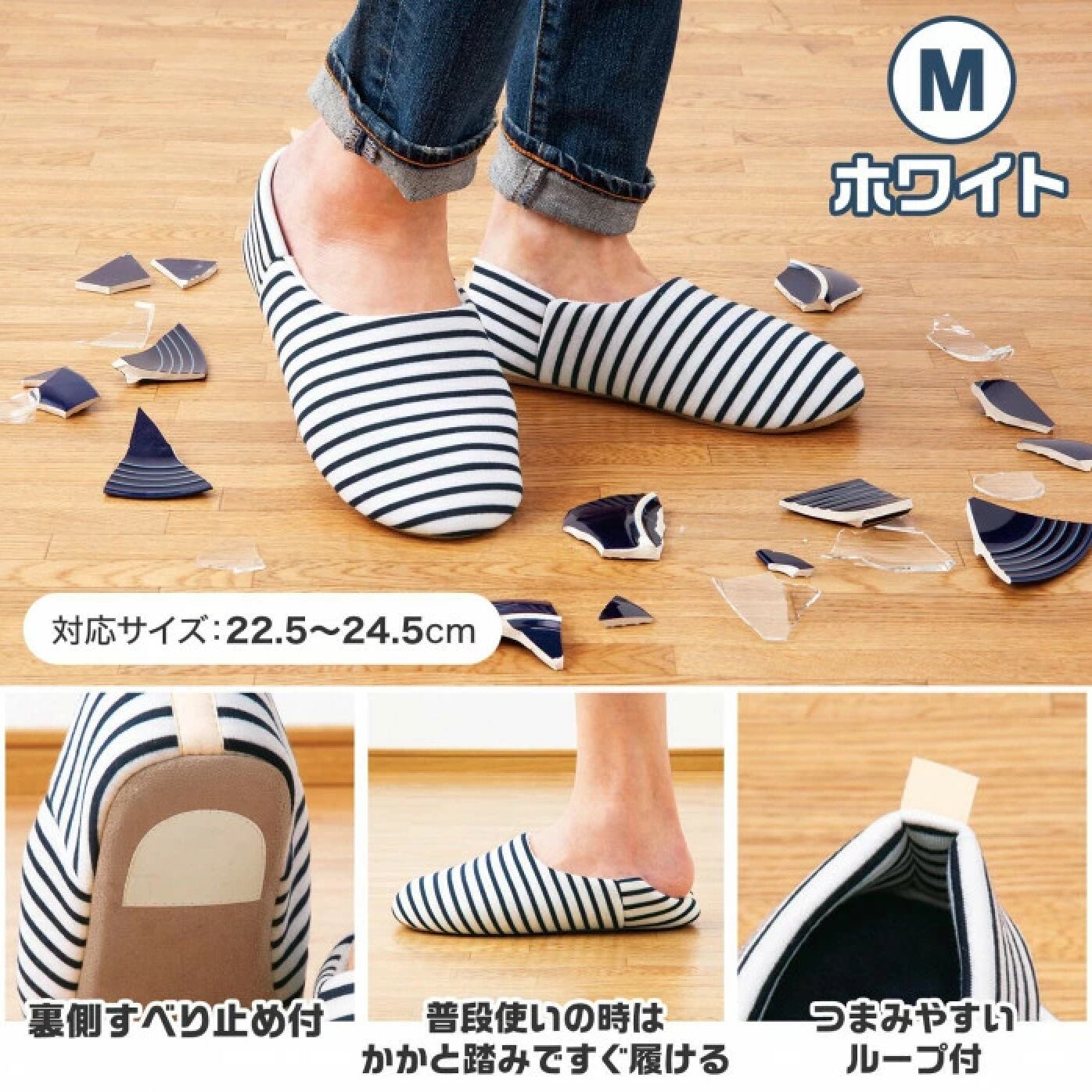 防災 スリッパ 釘 ガラス から足を守る M ホワイト