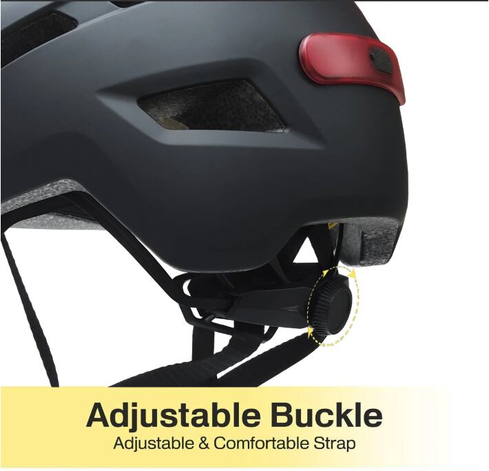 このヘルメットには、後方からの視認性を高めるテールライトが搭載されており、安全な走行をサポートします。夜間や雨天時の走行でも、安心してお使いいただけます。さらに、軽量で通気性の良い素材を使用しているため、長時間の装着でも快適なつけ心地です。