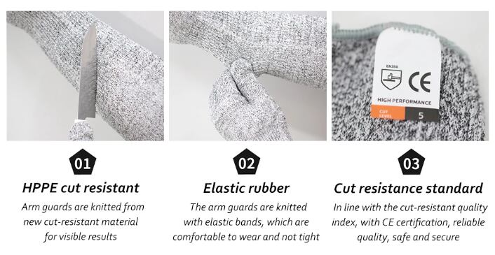 このアームスリーブは、高強度な材料を使用しており、刃物からの防護を実現します。軽量で伸縮性のある構造により、長時間の着用でも快適さを保ちます。また、通気性にも優れているため、汗をかいても蒸れにくく、快適にご使用いただけます。