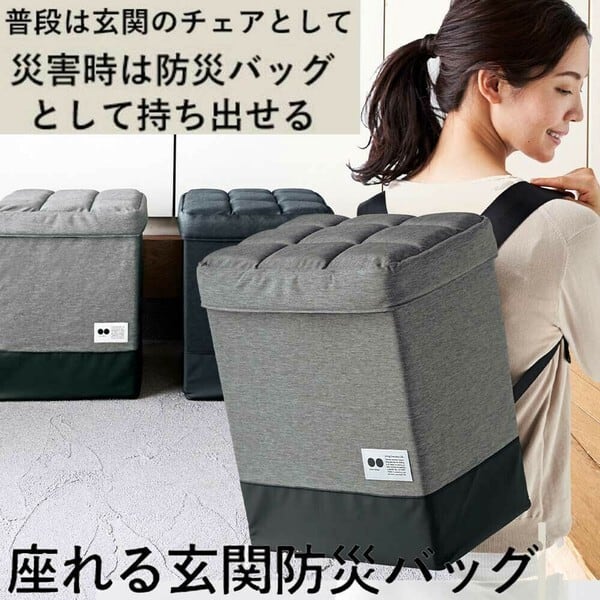 ブラック 防災 リュック 座れる玄関防災バッグ